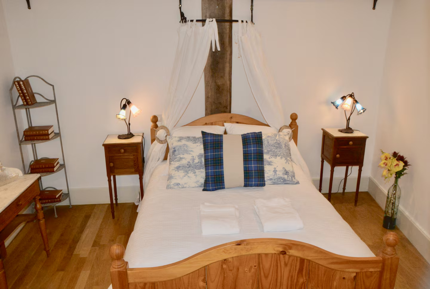 Sa magnifique tête de lit en fer forgé date de l’origine de la maison. Elle apporte une touche victorienne au lit double (140cm) ultra confort.